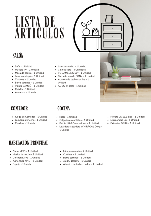 PACK PREMIUM - 1 habitación - Sin mobiliario exterior - LINEA BLANCA INCLUIDA