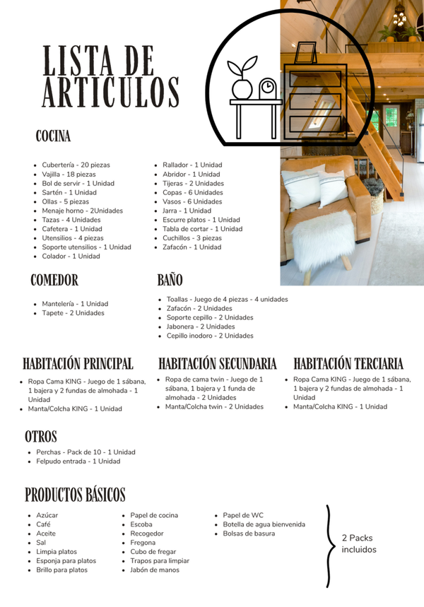 Pack AIRBNB para vivienda de 3 habitaciones y 2 baños.