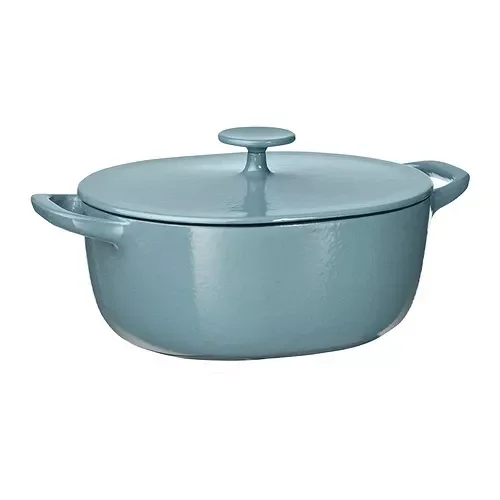 Cazuela con tapa, hierro fundido esmaltado beige claro/azul grisáceo oscuro, 5.3 qt